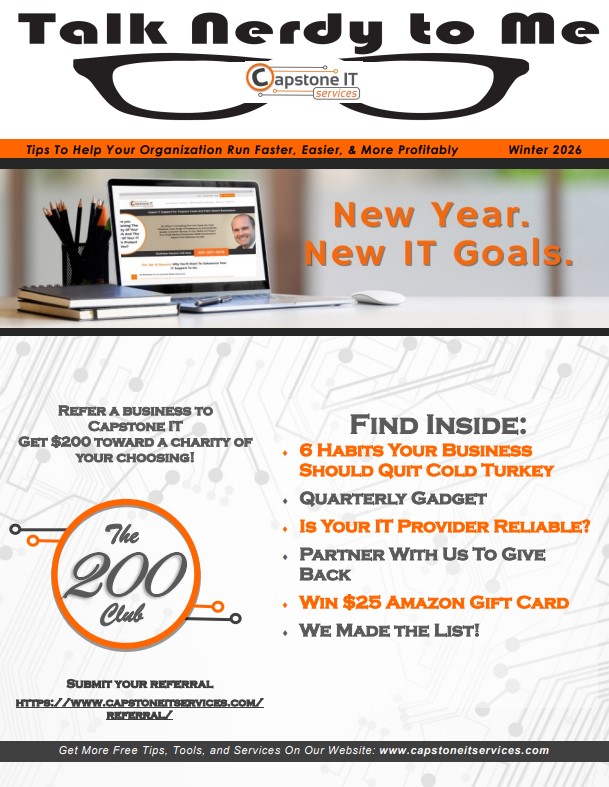 January 2026 Newsletter In this issue: 6 Habits Your Business Should Quit Cold Turkey Quarterly Gadget Is Your IT Provider Reliable? Partner With Us To Give Back Win $25 Amazon Gift Card We Made the List! View in Browser
